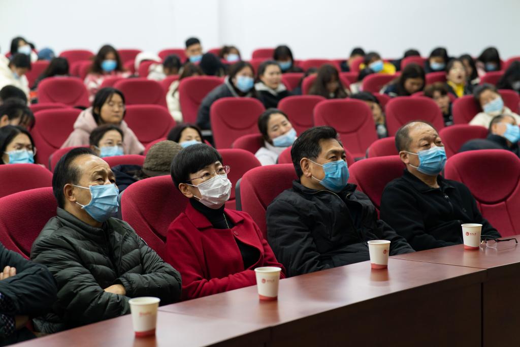 现场认真聆听的师生、领导